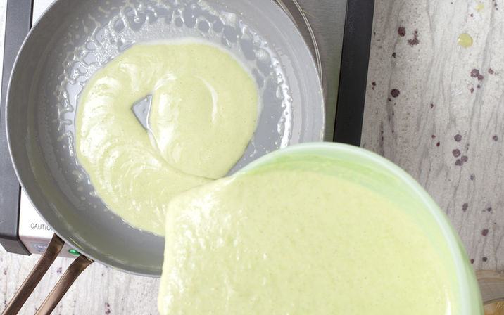 1. Line a large plate or baking sheet with parchment paper. In a medium bowl, whisk together flour, eggs, milk, and a large pinch of salt until smooth.